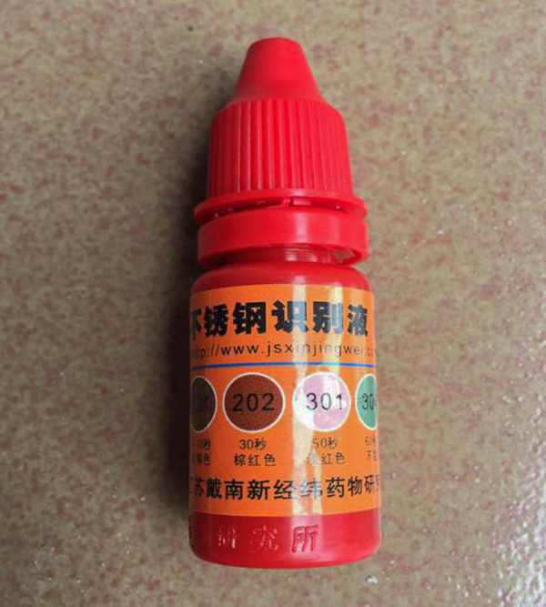 泫氏廠家對(duì)不銹鋼卡箍材質(zhì)采用光譜分析儀進(jìn)行檢測(cè);用戶也可采用不銹鋼識(shí)別液進(jìn)行鑒定,這是一種通過(guò)識(shí)別卡箍材質(zhì)是否含鎳來(lái)判斷劣質(zhì)200系列卡箍和300系列卡箍的簡(jiǎn)易方法,如圖所示。