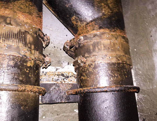 除了管材管件應(yīng)該符合國(guó)家標(biāo)準(zhǔn)以外,***重要的就是連接配件,市面上數(shù)不清的小廠卡箍以假亂真,用肉眼根本無(wú)法識(shí)別,如果黑心的商家選用了劣質(zhì)200系列材質(zhì)的卡箍后果不堪設(shè)想,不僅極易被腐蝕,而且容易斷裂。如上圖所示,僅僅使用了10個(gè)月的201材質(zhì)卡箍出現(xiàn)了腐蝕、斷裂的情況。